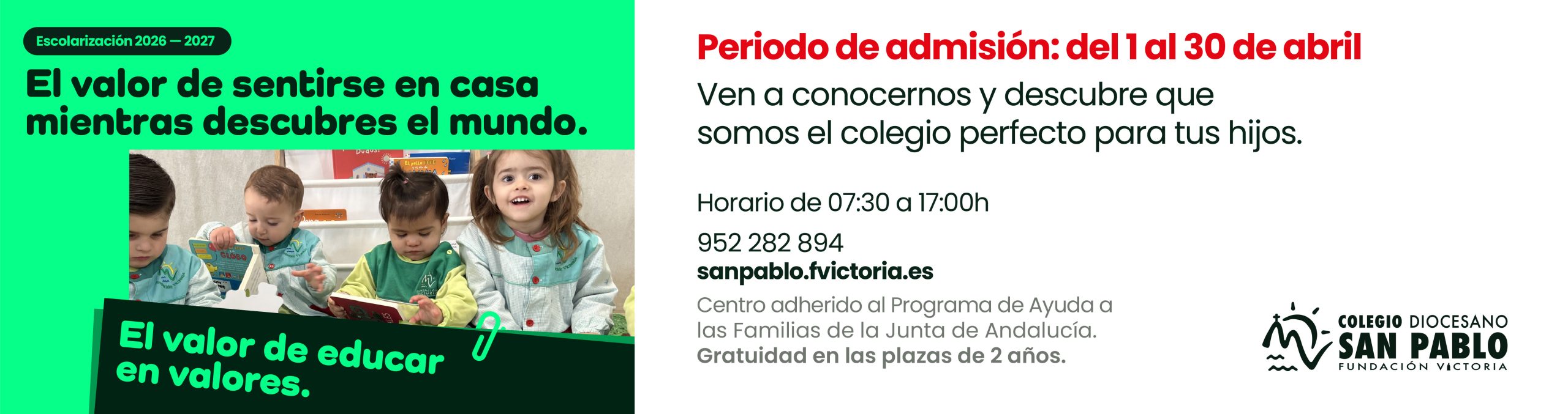 El Colegio Diocesano San Pablo informa a las familias de la apertura del proceso ordinario de escolarización para el Primer Ciclo de Educación Infantil (0-3 años) correspondiente al curso 2026-2027,...